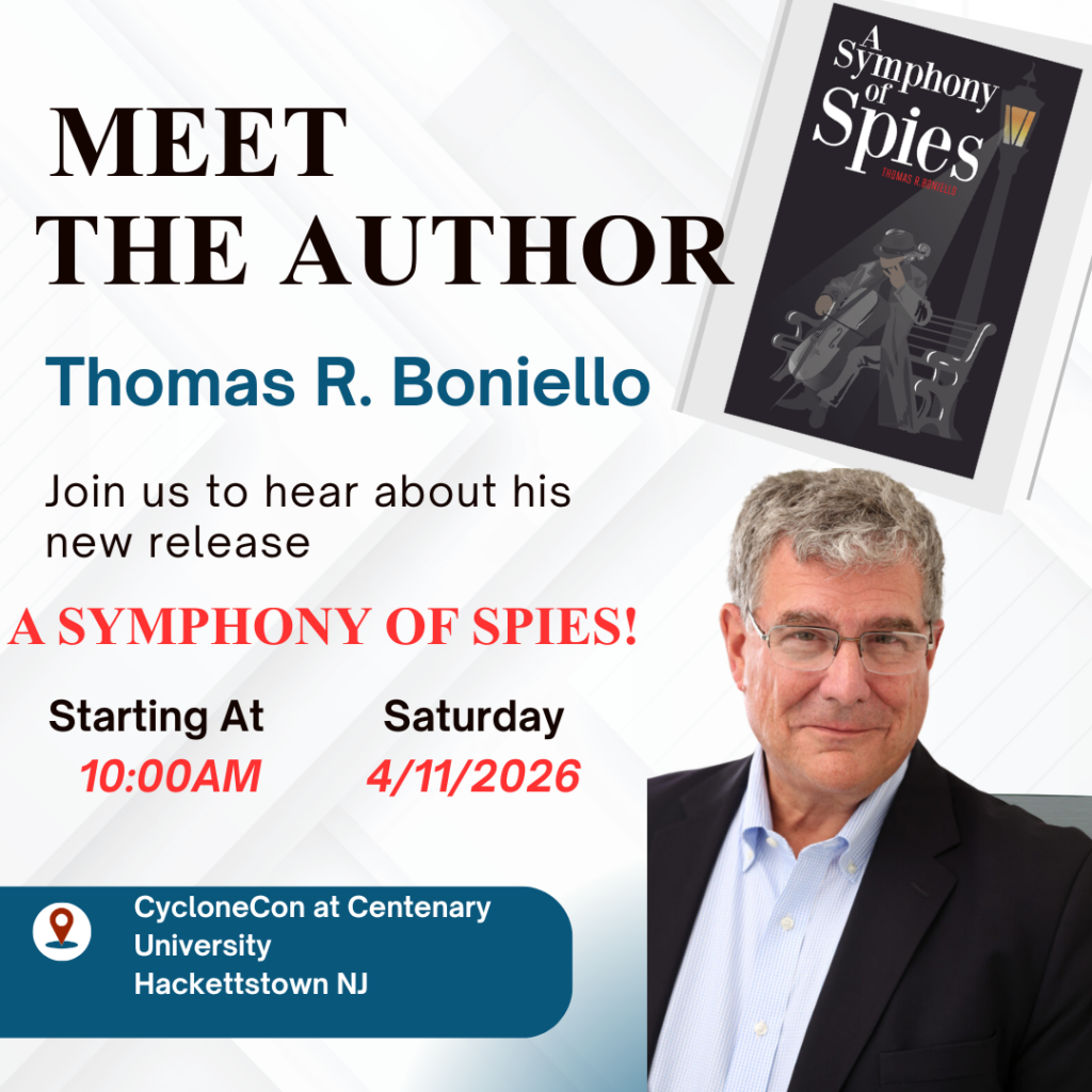 Come meet Thomas Boniello at CycloneCon! Centenary University is hosting its 3rd annual pop culture experience, CycloneCon, on Saturday April 11 from 10 a.m. to 6 p.m. There will be a full lineup of workshops, trivia, and panels. The exhibitor hall will feature nearly 100 vendors, artists, video game developers, and authors. There will also be food trucks, kids activities, and more! Tickets are only $10! Order your tickets today!